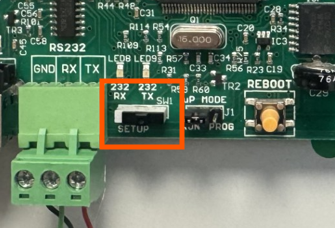 Ensure the BMS Interface Test Switch is in the off position (located next to the RS232 port as below).